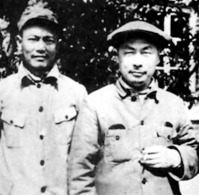1947年7月,解放战争转入战略进攻。8月5日,李先念率领的晋冀鲁豫军区第12纵队挥师东进,南下中原,先后攻克河南通许、扶沟等地。10月上旬,李先念(左)同陈毅一起抵达淮阳,陈毅对第12纵队连以上干部作了重要讲话,高度评价了部队的战斗功绩。资料照片