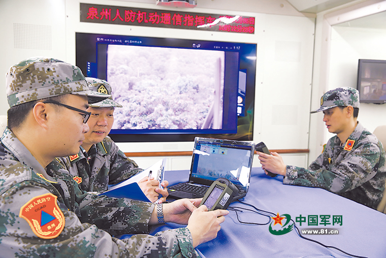 福建省泉州市人防办工作人员运用北斗系统进行指挥。祖亚辉摄