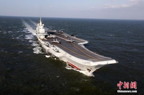 资料图:中国海军辽宁舰在渤海某海域进行舰机融合训练。 中新社发 李唐 摄