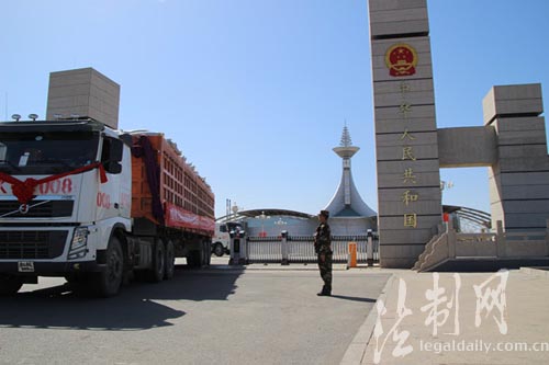 为保障内蒙古阿拉善左旗政府无偿援助蒙古国南戈壁省的物资经策克口岸出境,内蒙古边防总队策克边检站加开绿色通道,为这批援助物资高效办理了通关手续。