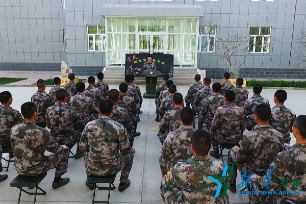 在全民国家安全教育日来临之际,新疆军区某步兵团组织官兵开展国家安全教育。图为警侦连上等兵庄田田为官兵普及国家安全知识。何李烊 摄