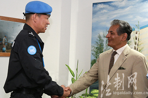 图为联利团秘书长特别代表法里德·扎里夫接见防暴队陈利华政委