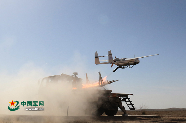 中国陆军无人机发射升空。