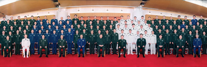 中共中央总书记、国家主席、中央军委主席习近平18日接见新调整组建军级单位主官,并对各单位发布训令。这是习近平同新调整组建军级单位主官亲切合影。新华社记者 李刚 摄