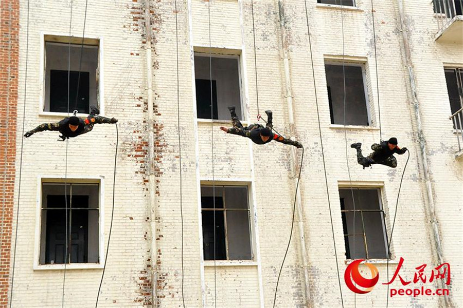 近日,中部战区陆军某特种作战旅组织特战队员开展攀登、越障碍、擒敌、班组战斗等课目训练,全面锤炼特战队员军事素质和技战术水平,为提高部队战斗力和遂行多样化任务打下坚实基础。(记者 黄子娟)