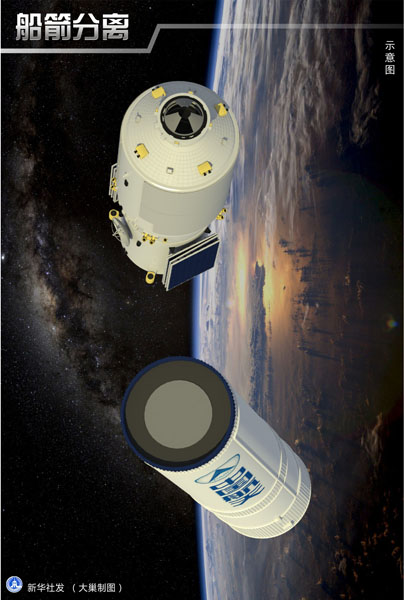 图表:船箭分离 新华社发 大巢制图