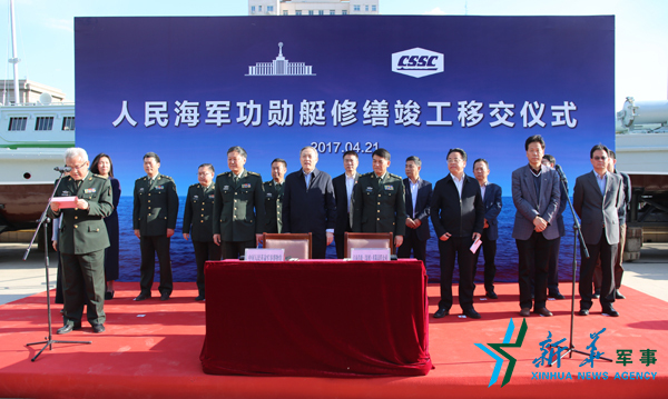 4月21日下午,两艇修缮竣工移交仪式在军事博物馆举行。军事博物馆、中船集团有关领导出席仪式。