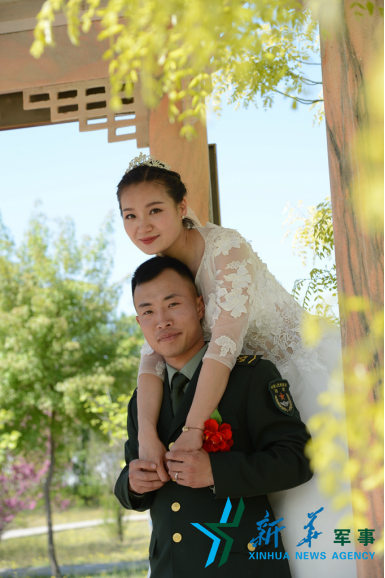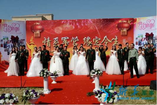 新华网石家庄4月25日电(刘培忠、叶红)中部战区陆军某部日前为13名因任务推迟婚期的官兵举办了集体婚礼,在全体官兵的共同见证下分享了最幸福的时刻。