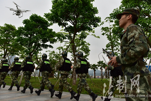 图为利用无人机配合巡逻 对管区内进行空中监控