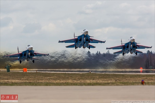 图为换装苏-30SM战机后的“俄罗斯勇士”表演队升空彩排。