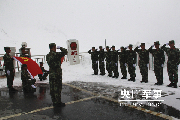 4月29日,在中巴边界线上刺骨的寒风中,边防总医院与新疆总队医院“健康基层行”联合医疗队全体队员进行了“雪域高原砺血性,中巴国门铸忠诚”宣誓活动;