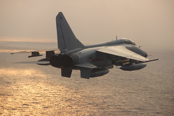 资料图:飞豹战机海上低空飞行。陈辉 摄