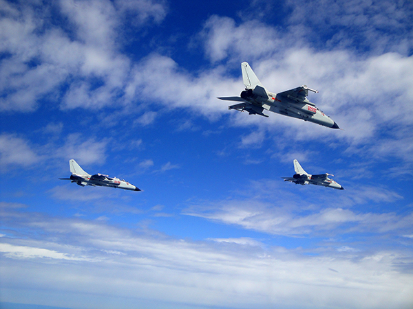 19时05分,随着指挥员命令的下达,多架“飞豹”战机梯次起飞,组成多个低空攻击队形成功对“敌”舰艇编队实施超低空突击,部队实战能力得到全面检验和锤炼。