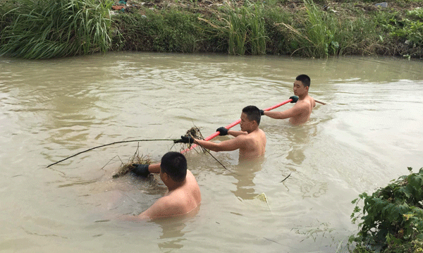 战士整治过河光缆。