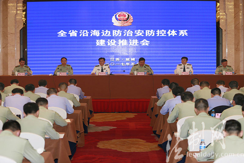 图为江苏边防总队在盐城召开全省沿海边防治安防控体系建设推进会