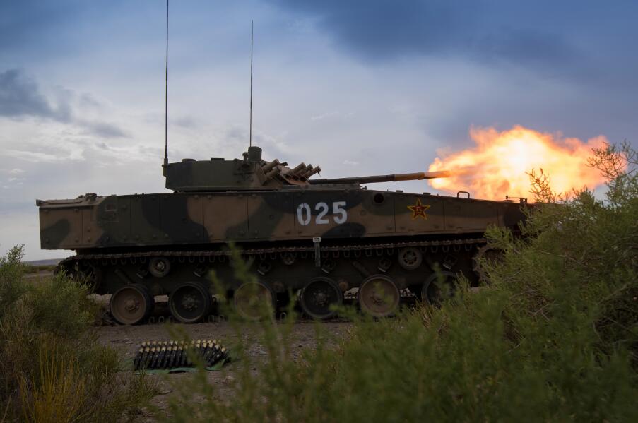 国产某新型步战车正在进行射击训练。新华社记者琚振华摄