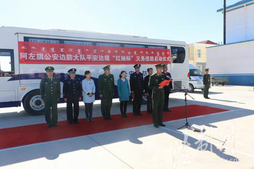 “现在我宣布草原‘红袖标’义务巡防工作正式启动!”5月10日,内蒙古边防总队阿拉善盟边防支队阿左旗边防大队与驻地公安机关在辖区乌力吉苏木联合举行平安边境草原“红袖标”义务巡防启动仪式,伴随着这一响亮的“启动”声,这个大队首支草原“红袖标”义务巡防队正式组建,也意味着该大队平安边境“红袖标”义务巡防活动正式进入实施阶段。