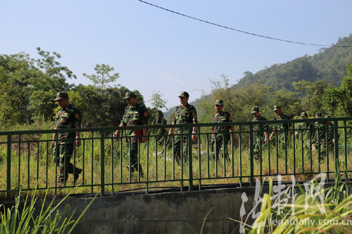 6月3日,云南边防总队天保边防检查站与越南清水国际口岸边防屯在中越陆地边界地段举行徒步联合巡逻。