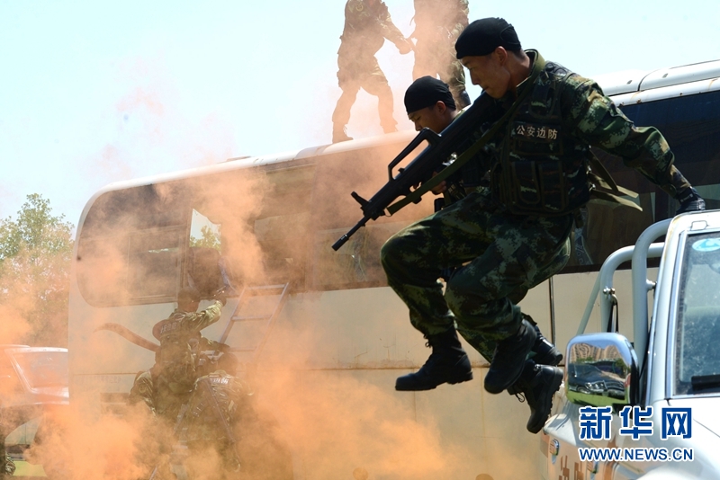 6月8日,河北边防总队针对河北沿海辖区特点和所担负的任务,组织特勤队官兵开展多种预想科目处突技能训练,以提高官兵在处置急难险重任务时的综合能力。(王小雪)
