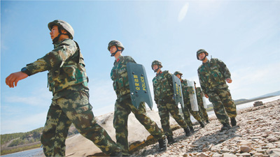 边防派出所民警在巡逻执法。