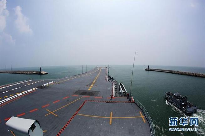 6月25日,辽宁舰驶出青岛某航母军港。新华社记者曾涛摄