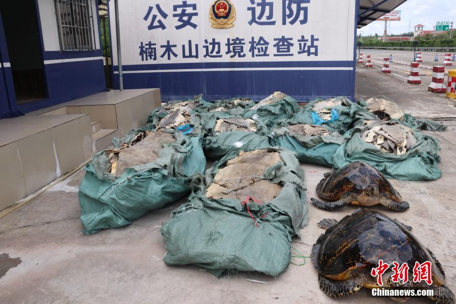 6月27日,广西防城港边防支队楠木山边境检查站执勤官兵在对一辆重型厢式货车例行检查时,查获涉嫌非法运输玳瑁标本2只、鲨鱼皮11袋。这两只玳瑁标本重量共达到40多公斤,而11袋鲨鱼皮重约1吨。据悉,玳瑁是国家二级重点保护野生动物,已被列入《世界自然保护联盟》(IUCN)2012年濒危物种红色名录。(张振国)