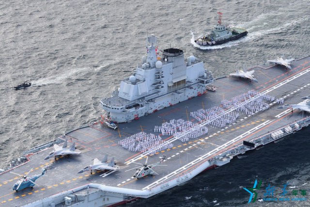 ↑7月7日上午,海军航母编队抵达香港。700余名官兵在辽宁舰飞行甲板上列队排成“香港你好”字样,以海军独有的方式向香港市民表示亲切、诚挚问候。解放军驻香港部队提供