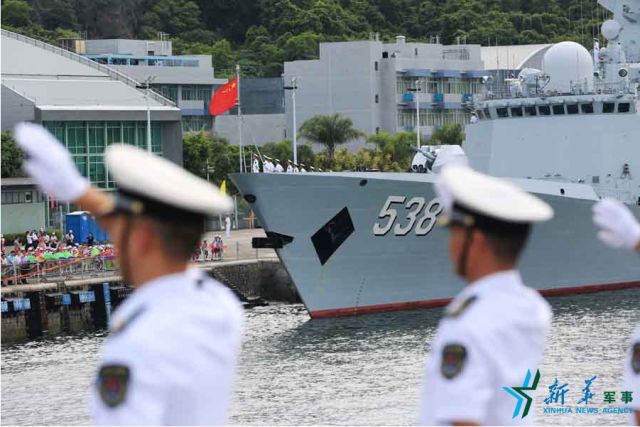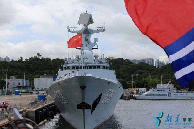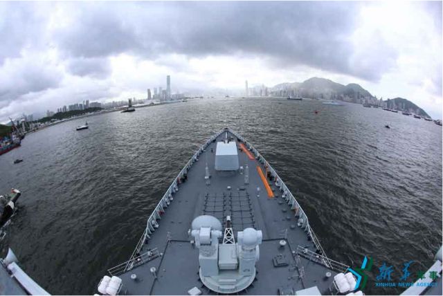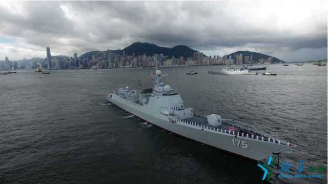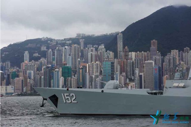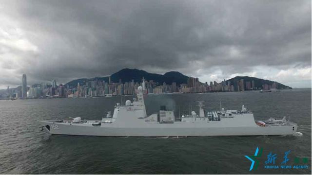 ↑7月7日,海军银川舰驶入昂船洲码头。新华社记者 曾涛 摄