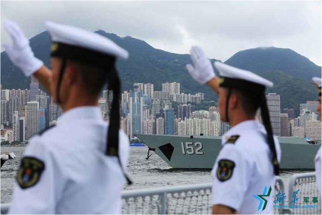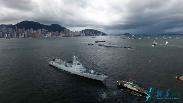 ↑7月7日,海军济南舰缓缓驶入香港昂船洲码头。新华社记者 曾涛 摄