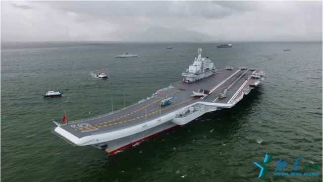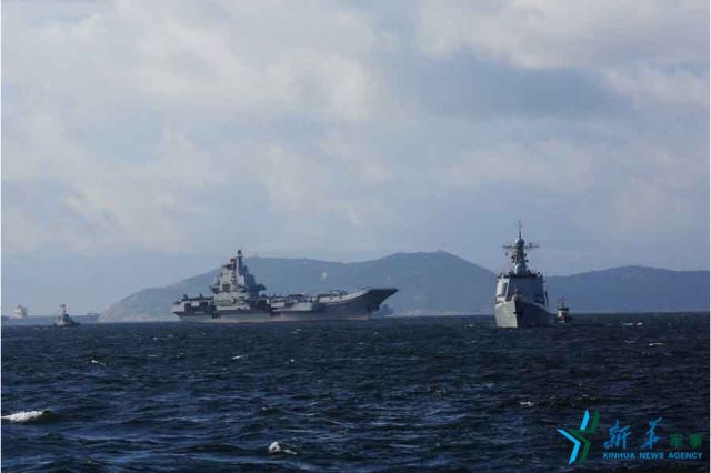 ↑7月7日,辽宁舰(左)驶入锚泊地。新华社记者 曾涛 摄