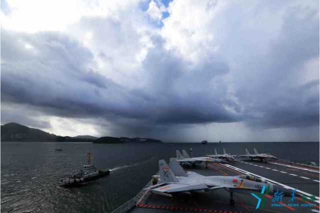 ↑7月7日,辽宁舰锚泊在香港维多利亚湾。新华社记者 曾涛 摄