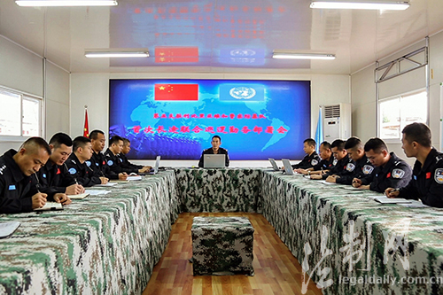 图为中国第五支驻利比里亚维和警察防暴队召开专题会议,反复研究勤务方案,部署任务。