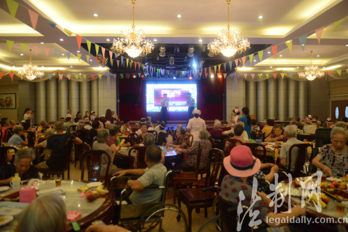 7月18日,广东边防总队中山边防支队勤务中队开展集体认亲迎“八一”活动,边防官兵带着水果、蛋糕等慰问品来到中山市华宇乐颐养院与该院爷爷奶奶结对子,为他们过生日,与他们聊家常、玩互动游戏,欢乐共舞,并以此形式喜迎中国人民解放军建军90周年的到来。(肖亭 宗志鹏)