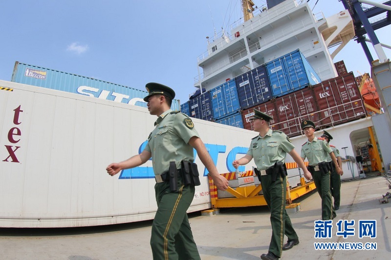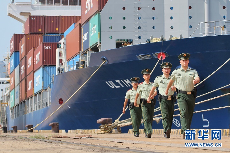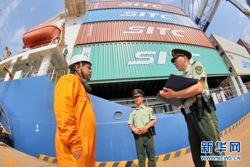 连日来,山东烟台持续高温天气,担负烟台港出入境人员和船舶边防检查、打击偷渡及走私任务的烟台边防检查站官兵们,每日冒着酷暑坚守在港口码头和外籍船舶巡查一线,维护口岸稳定和通关秩序。鞠承昊 摄