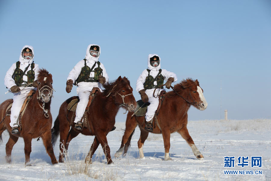 戍边官兵冬季在边防线上巡逻执勤。陈在林 摄