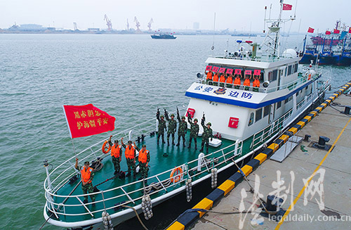 7月31日,中国人民解放军建军90周年纪念日即将来临之际,山东边防总队东营边防支队船艇大队官兵在前甲板合影留念,表达新生代官兵坚定维护核心,弘扬老一辈革命军人优良传统,誓做近海平安铁盾的赤胆忠心。这支年轻的公安现役边防船艇部队组建于2006年,是全国唯一一支护卫海上石油产区的现役武装力量。建队十一年来,东营近海实现连续十一年涉油案件“零得逞”。(陈镜旭)