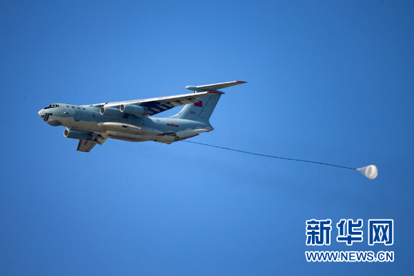 8月4日,中国空军伊尔-76战机在“航空飞镖”靶场开放日进行重装空投。新华社发(杨盼 摄)