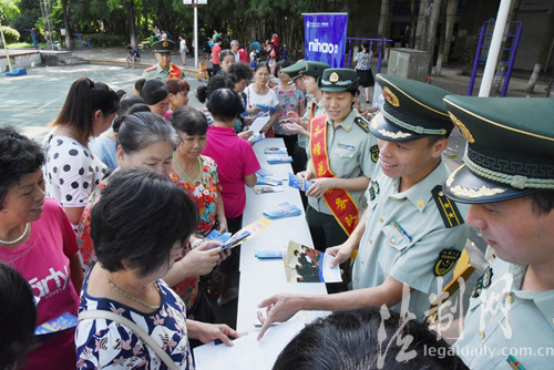 为密切警地联系,展现国门良好形象,8月8日, 广西边防总队南宁边检站的官兵们走进驻地社区,开展 “平安国门·天天伴你”的服务品牌宣传活动。