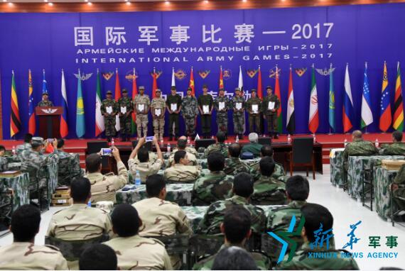 截至11日,中国陆军承办“国际军事比赛—2017”4项赛事单项赛全部完成。下午,分别在“军械能手”比赛场地和赛事新闻中心举办了单项奖颁奖礼,各赛事裁判长将获奖证书和奖品颁发给获奖队员。各参赛队鼓掌欢呼,共同合影,交换礼物,互道祝贺之情。