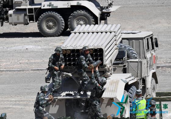 11日,“军械能手”修理排接力赛中,中国参赛队火箭炮检验射击瞬间。赵治国 摄