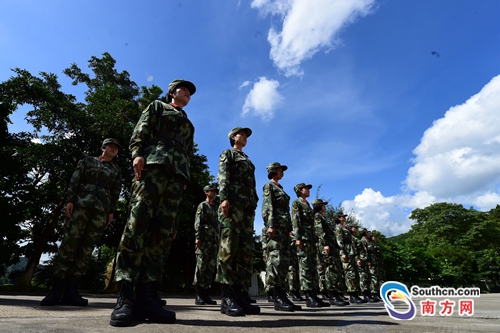 时下,全国高温仍在持续。8月14日,武警广东省边防总队机动支队训练基地女兵战炎炎烈日、抗50℃高温,在训练场进行军姿训练,锻造钢铁般的军人姿态,锤炼雷厉风行的军人作风。