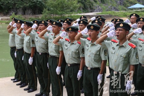 “我是中国人民武装警察,我宣誓:服从中国共产党的领导,全心全意为人民服务,服从命令,严守纪律……”近日,广西边防总队百色边防支队组织40余名临退老兵,来到中越边境举行向界碑告别仪式。