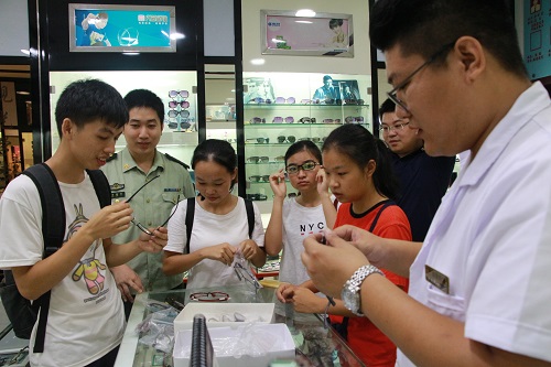 8月28日下午,广西边防总队防城港边防支队东兴边防派出所民警与驻地热心群众在开学前贴心地为考上大学的五个帮扶对象送上行李箱、棉被以及一些日常生活用品,还特地带他们去到眼镜店里配眼镜。