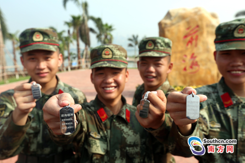 “杨志!”“到!”“你是一中队第几名战士?”“我是一中队第169名战士,身为模范集体一员我深感骄傲!”“现在授予你荣誉牌,请入列!”9月5日,在中国人民抗日战争暨世界反法西斯战争胜利72周年之际,广东边防六支队一中队指导员赵文超与战士们铿锵有力的对话在深圳前海这块创新改革的土地上响亮。当天,该中队向每一名官兵授予了一枚银光闪闪的专属荣誉牌。荣誉牌正面刻有中队番号、拥有者姓名和自己的编号,背面中队精神“越艰苦越坚持,越寂寞越坚定,越平凡越坚守”几个大字十分显眼。在荣誉牌授予仪式上,全体官兵热血沸腾,斗志昂扬,面对队旗庄严举起握拳的右手,用铿锵的誓言致敬意、表决心、释忠诚。