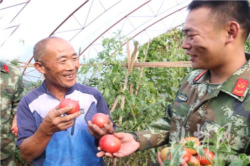 9月4日,驻守在吉林省龙井市三合镇的吉林边防总队三合边防检查站迎来了第一批农作物大丰收,每年的这个时候官兵们都会邀请驻地群众分享自己种植的瓜果蔬菜。吉林省龙井市三合镇是远近闻名的“松茸之乡”“苹果梨之乡”,近年来,该站坚持生态养殖环发展工作思路,依托资源区位优势,采用条播、果树嫁接和大棚养殖等新方法,广泛种植苹果梨、豆角、西红柿、辣椒等农作物不断丰富官兵的“菜篮子”。(许航)