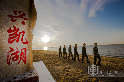 边防官兵在兴凯湖边巡逻。 周毓亮 摄