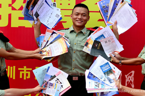 图为老兵像展示荣誉一样展示收获的岗位招聘资料