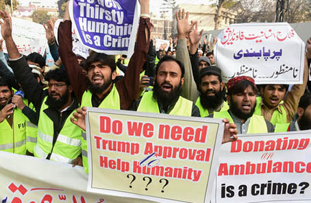巴基斯坦民众2日在拉合尔举行反美抗议(法新社)