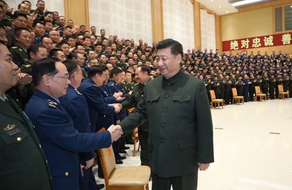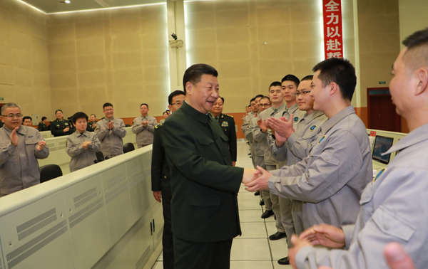 新华社成都2月12日电(记者李宣良、李国利)中华民族传统节日——春节来临之际,中共中央总书记、国家主席、中央军委主席习近平10日来到驻四川部队某基地,深入发射工位和技术厂房,看望慰问部队官兵,代表党中央和中央军委,向全体解放军指战员、武警部队官兵、民兵预备役人员致以诚挚问候和新春祝福。他强调,要认真贯彻党的十九大精神,深入贯彻新时代党的强军思想,坚持政治建军、改革强军、科技兴军、依法治军,聚焦备战打仗,加快创新发展,全面提高履行使命任务能力,为实现党在新时代的强军目标作出新的更大贡献。