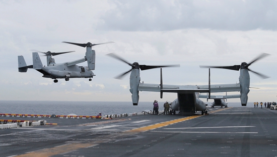 同时,日本正积极寻求更新现有的导弹防御系统。2017年12月9日,日本政府确定部署陆基“宙斯盾”反导系统,还积极要求部署“萨德”系统。另外,美日联合军演也在不断加强。2017年11月16日至26日,在名为“2017年度演习”的美日海上军演中,美方派出约1.4万名官兵,参演的美国军舰包括“里根号”航母以及多艘“宙斯盾”驱逐舰,演习在冲绳附近一带水域举行。2018年2月5日,日本陆上自卫队和美国海军陆战队在美国加利福尼亚州举行以“夺回离岛”为想定的联合演习。